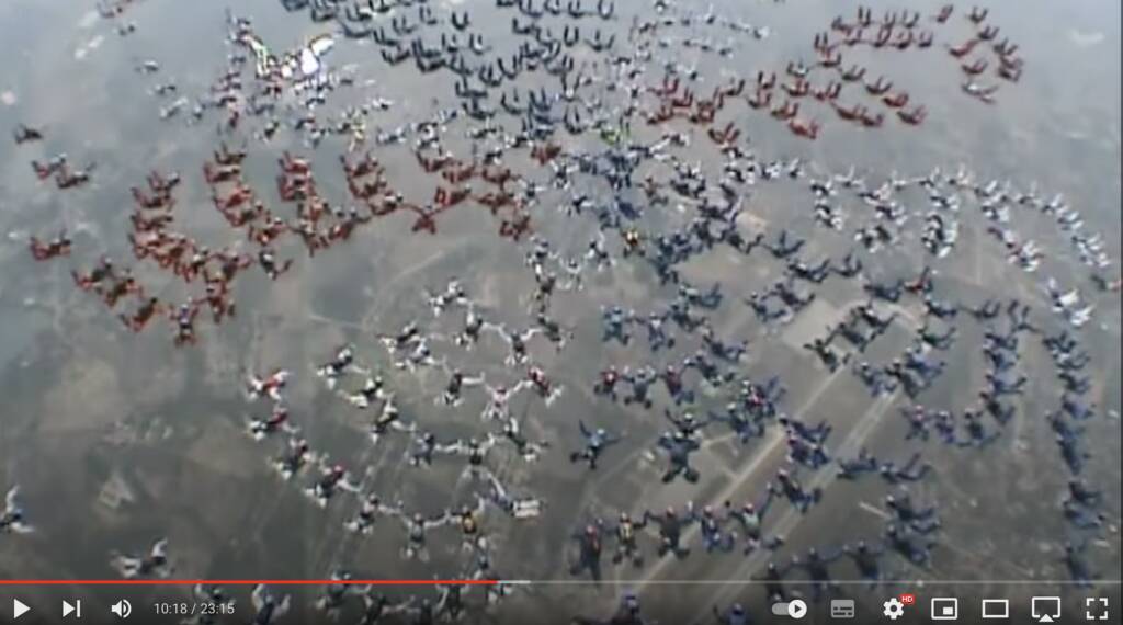 Le parachutisme est un sport qui comprend de nombreuses disciplines, et donc des centaines de records plus fous les uns que les autres. Cela peut être du parachutisme de précision, du wingsuit, du saut en formation ( qui lui-même comprend différentes catégories : tête en haut, tête en bas, sur le ventre, 100% féminin)…