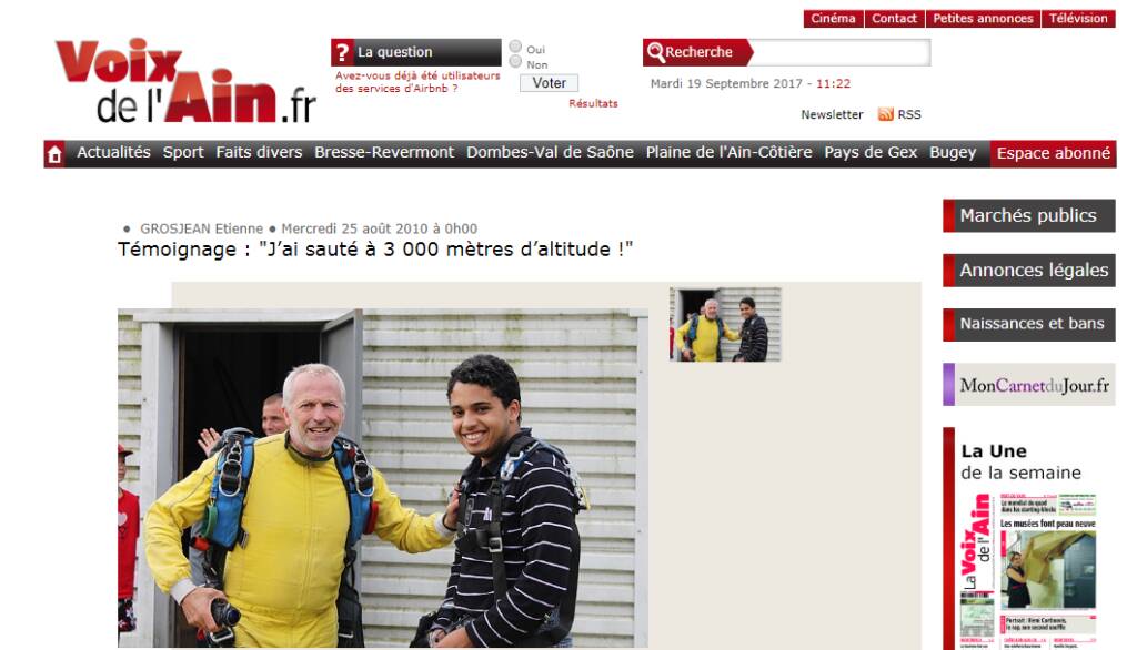 Et pour vous mettre l’eau à la bouche, retrouvez le reportage du Journal La Voix de L’Ain sur Ciel d’Aventure… Ca date un peu, mais on n’a (presque) pas vieilli vous verrez 😉